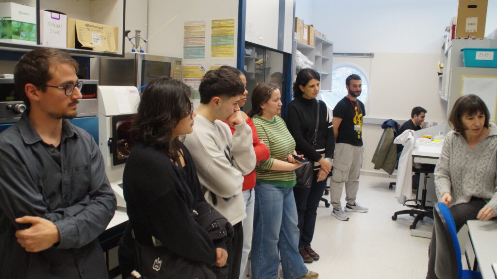 On January 27th, 2026, four students and two teachers visited the CNB, where Pablo Herrera introduced the CSIC, the CNB, the groups participating in the iAds consortium. He also explained the goal and implementation of the project. After this, they visited the Electron Miscropy Service, where they learned about electron microscopy and imaged some viruses (many thanks to Beatriz Martín Jouve of the CNB EM service). The award ceremony then took place, where the winner, Santiago Cárdenas, received his iPad and all visitors received iAds hats, T-shirts and tote bags.